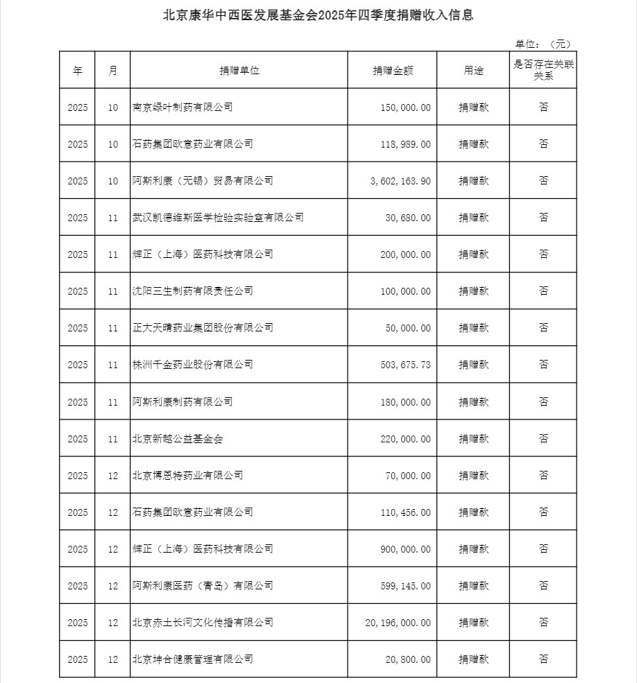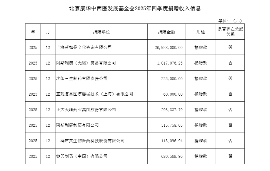 2025年4季度捐赠收入信息