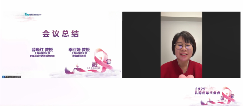 薛晓红教授在开场致辞中回顾了栏目的成长历程,本栏目始终致力于分享乳腺疾病研究进展、规范诊疗及疑难病例讨论,特别注重传播中医在乳腺疾病诊疗中的独特理念。中西医结合已从辅助角色,发展为贯穿乳腺癌全程管理的核心策略,本次年终盘点正是对这一融合成果的集中展示。