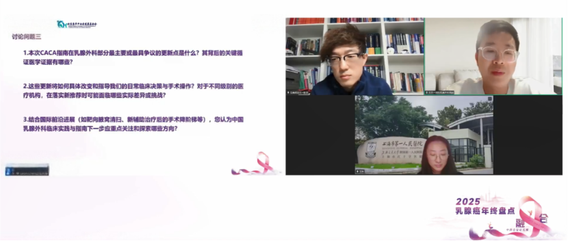 本环节由吕鹏威教授主持,围绕2026版《中国抗癌协会乳腺癌诊治指南与规范》外科更新要点,解读其中“降阶”与“升阶”平衡的艺术。随后,王玮教授与陈阔教授结合临床实例与技术发展,就指南落地、手术工具演进及未来趋势展开了务实而前瞻的讨论。
