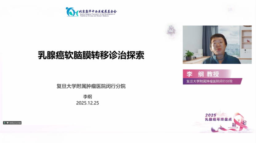 2025年12月25日,“融合·中西合璧话乳腺”栏目成功举办了年终特别盘点会议。本次会议以温馨的“点亮爱心灯”线上仪式启幕,象征着以科学之光与人文关怀照亮抗癌之路。会议汇聚了国内乳腺领域顶尖的中西医专家,围绕外科降阶梯策略、难治性脑膜转移攻坚、最新指南解读及中西医结合专科建设等前沿热点,展开了一场深度与温度并存的学术对话。