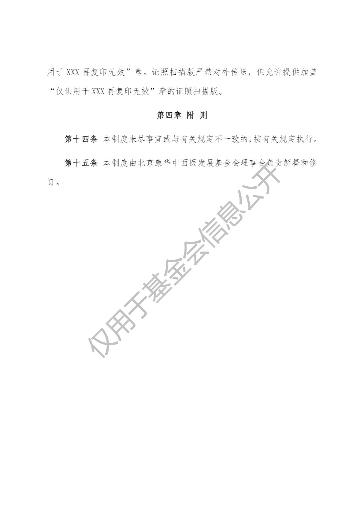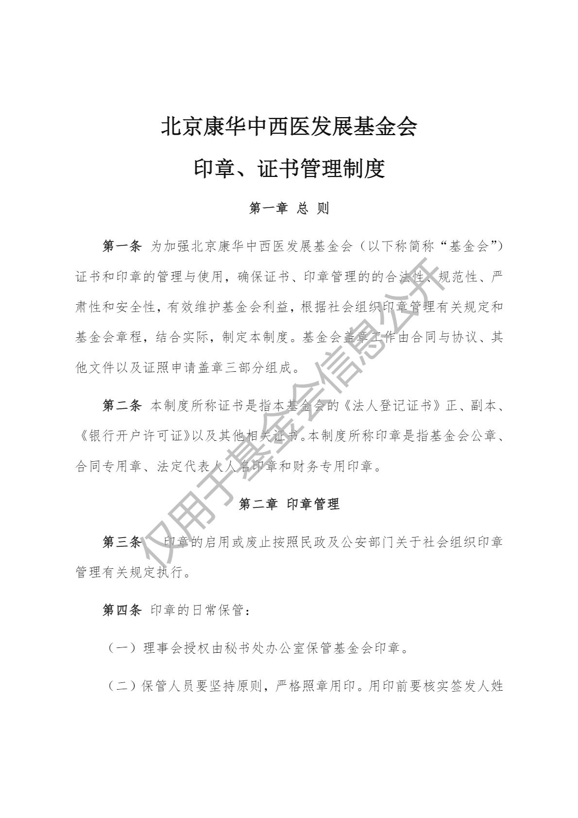北京康华中西医发展基金会印章、证书管理制度