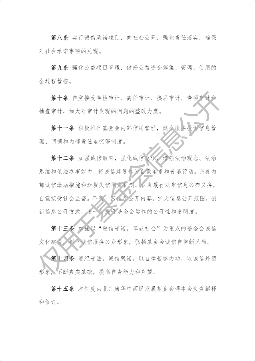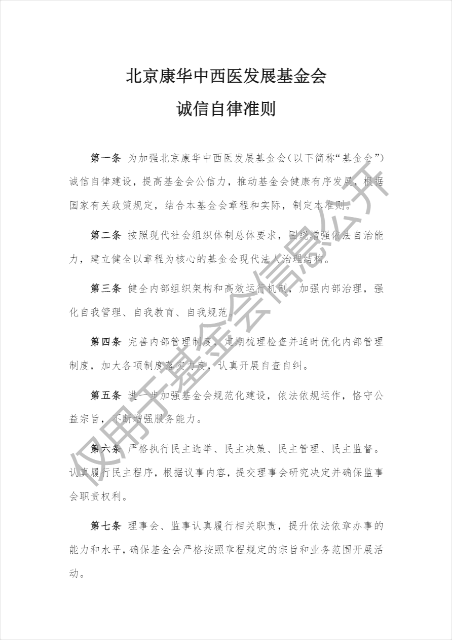 北京康华中西医发展基金会诚信自律准则
