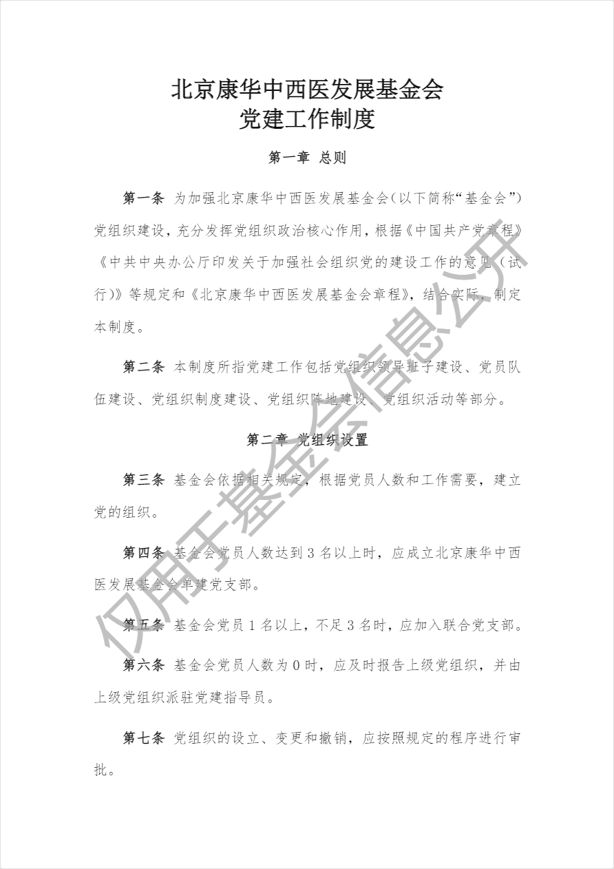 北京康华中西医发展基金会党建工作制度