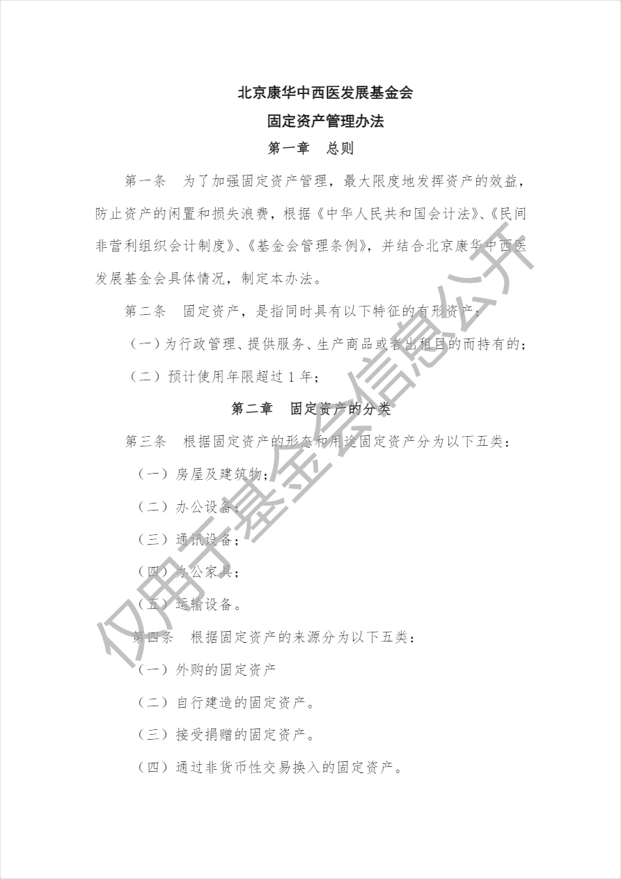 北京康华中西医发展基金会固定资产管理制度
